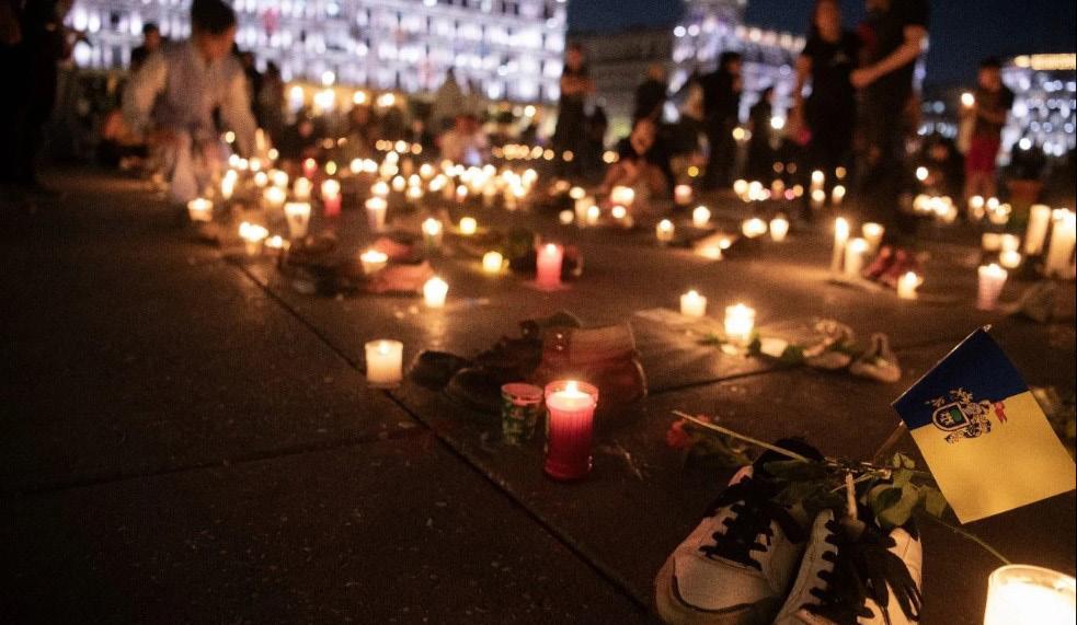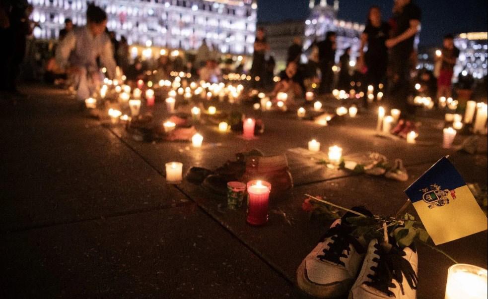 a las víctimas de desaparición en el país tras el hallazgo de fosas comunes en un rancho cerca de la ciudad de Teuchtitlán, en el estado de Jalisco, en el que miembros del Cártel Jalisco Nueva Generación (CJNG) entrenaban a jóvenes reclutados.