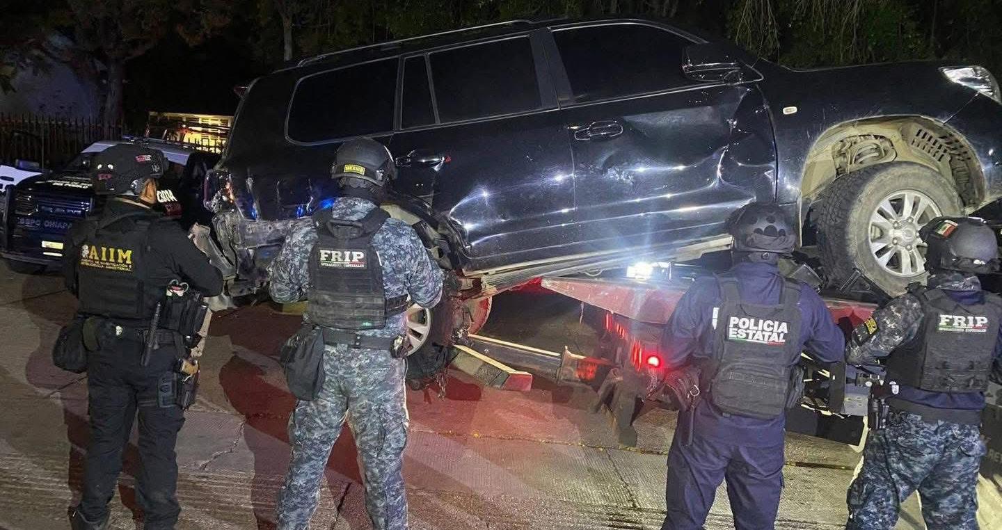 nes 2 de junio cerca del ejido Sabinalito en el municipio de Frontera Comalapa. Los agentes, cuatro hombres y una mujer, fueron encontrados calcinados dentro de una patrulla policial. La Secretaría de Seguridad del pueblo informó que activó la respuesta inmediata y desplegó a más de mil elementos en la zona. Por su parte, la Fiscalía General del Estado (FGE) abrió una carpeta de investigación por los hechos. Al día siguiente, fuerzas federales y estatales detuvieron a una persona identificada como Jorge “N”, presunto implicado en la emboscada a los policías.