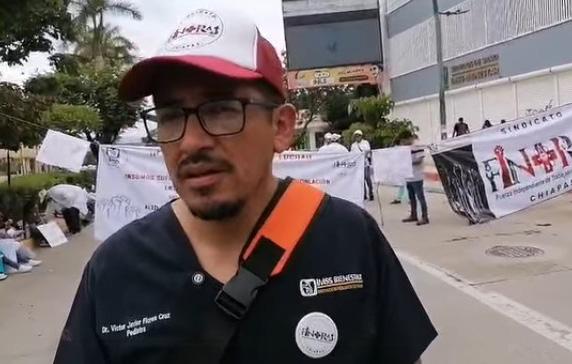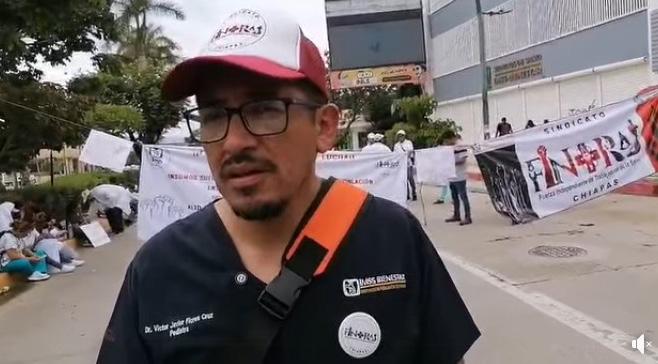 El doctor Víctor Javier Flores Cruz, dirigente estatal del sindicato Fuerza Independiente de Trabajadores de la Salud (sección Chiapas), y vocero del grupo denunció la grave crisis que enfrenta el sector salud en la entidad, durante una manifestación realizada este día como parte de un movimiento nacional.