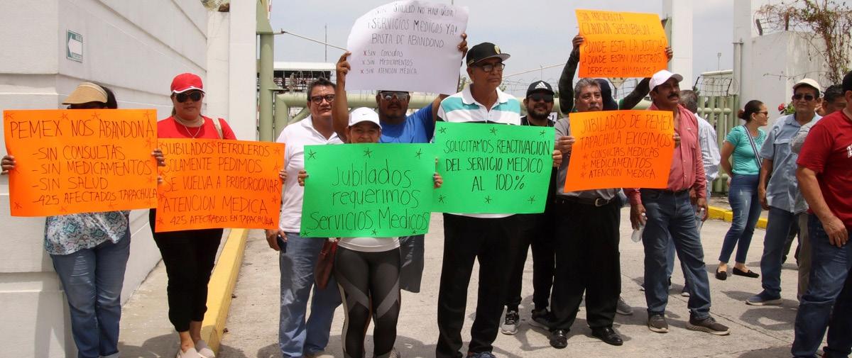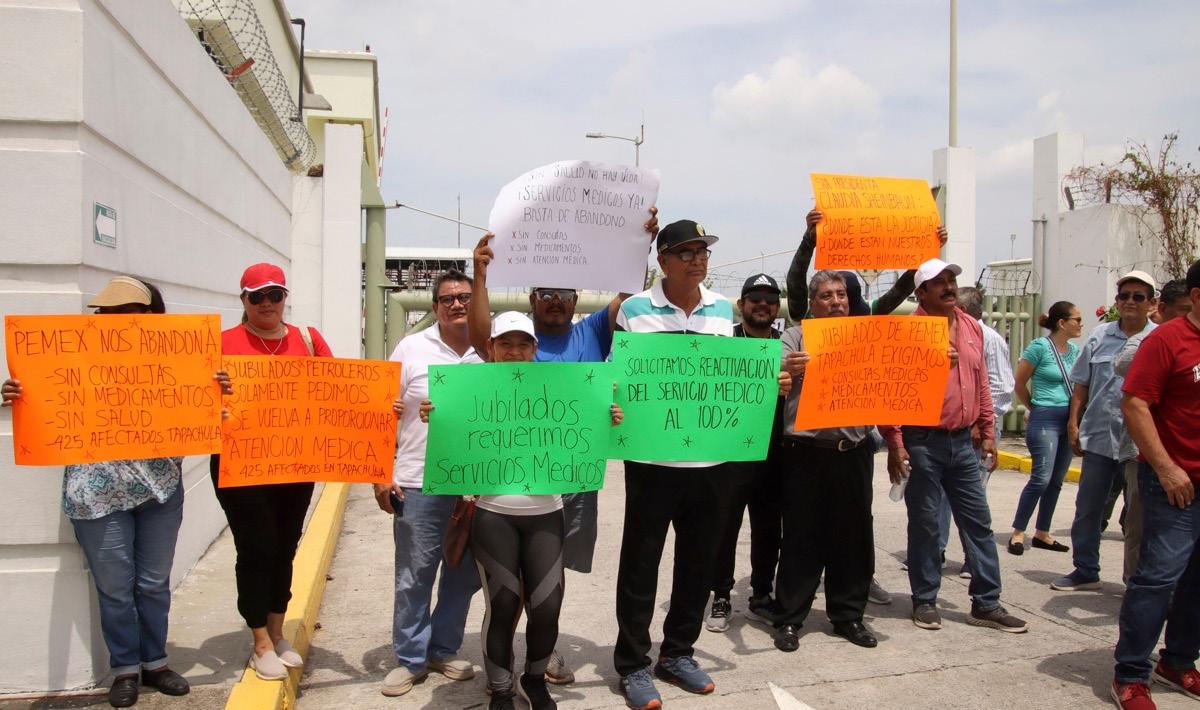 Noé Damián Aragón, jubilado de Pemex, denunció que llevan meses sin atención, médica y medicamentos, por lo que únicamente están pidiendo lo que les corresponde de manera pacífica. “Lo que nosotros pedimos es que la señora presidenta o el director de Pemex nos tomen en cuenta y no nos olviden, porque hemos dejado casi nuestra vida aquí, yo trabajé 37 años con ellos y hasta hoy estamos viendo este tipo de problemas, nosotros estamos pidiendo la reactivación (de los servicios)”, afirmó.