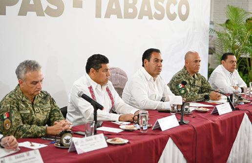 Asimismo, el magistrado presidente del Tribunal Superior de Justicia del Estado de Chiapas, Juan Carlos Moreno Guillén; el fiscal general del Estado de Chiapas, Jorge Luis Llaven Abarca; el secretario de Seguridad del Pueblo, Óscar Alberto Aparicio Avendaño; la secretaria técnica de la Mesa de Paz y Seguridad, María Baldramina Zepeda Melgar; el fiscal general del Estado de Tabasco, Óscar Tonatiuh Vázquez Landeros; y el secretario de Seguridad y Protección Ciudadana de Tabasco, Serafín Tadeo Lazcano, entre otros.