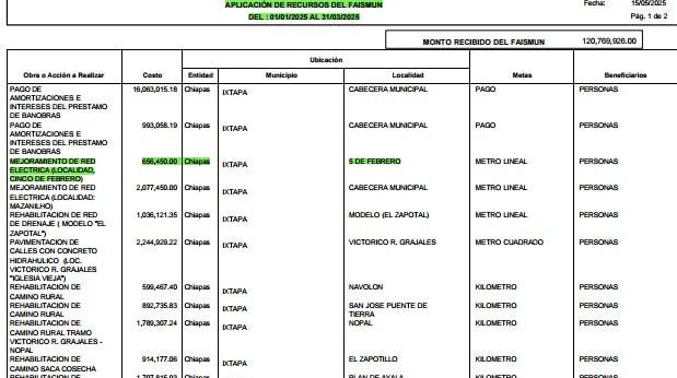 De acuerdo con los inconformes, lo alarmante es que, mientras en la realidad no existe ninguna obra en ejecución ni concluida, en los documentos oficiales del Ayuntamiento aparecen registradas supuestas acciones de infraestructura con montos millonarios.