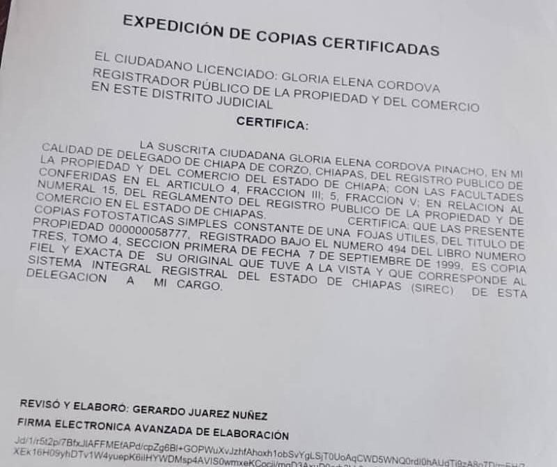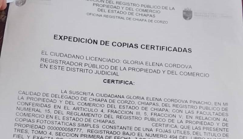 Una familia del municipio de Chiapa de Corzo denunció un presunto acto de corrupción dentro del Registro Público de la Propiedad, luego de que la herencia de su padre fallecido fuera adjudicada misteriosamente a otra persona.