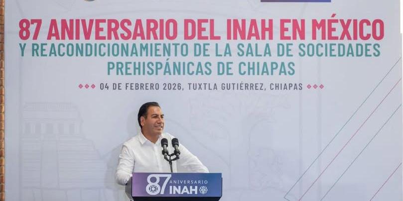 Por su parte, la secretaria de Infraestructura, Anakaren Gómez Zuart, resaltó el trabajo conjunto con el INAH para el reacondicionamiento de la Sala de Sociedades Prehispánicas de Chiapas, realizado con estricto apego a los lineamientos de conservación. Asimismo, celebró los 87 años de creación del Instituto a nivel nacional y 55 en Chiapas, y precisó que, por instrucción del gobernador Eduardo Ramírez, la Nue-