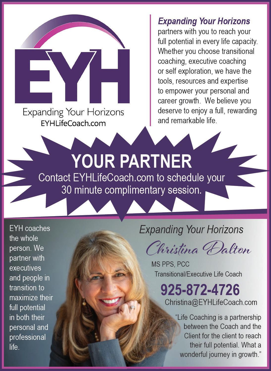 Christina Dalton is the principal Life Coach for Expanding YOUR Horizons. She is credentialed through ICF as a PCC, Professional Certified Coach. She has worked with people in all stages of life; including students, families, new businesses, etc. Christina embodies the passion and enthusiasm for you to reach your FULL professional and personal potential. “Working with us is a wonderful journey in growth fueled by empowerment, passion and execution.”