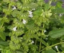 Es una planta aromática de tallos herbáceos y hojas verdes, ovales y dentadas. Puede alcanzar una altura de hasta 60 cm y produce pequeñas flores blancas o moradas en espigas terminales.
