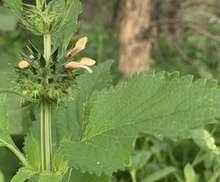 Es una planta herbácea perenne que puede alcanzar hasta 60 cm de altura. Tiene tallos cuadrangulares y hojas ovaladas, opuestas y peludas, de color verde oscuro. Produce pequeñas flores blancas o rosadas agrupadas en espigas.