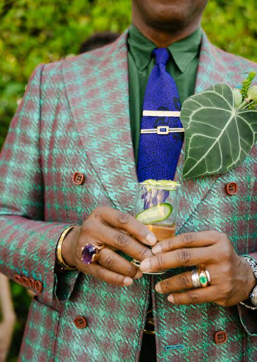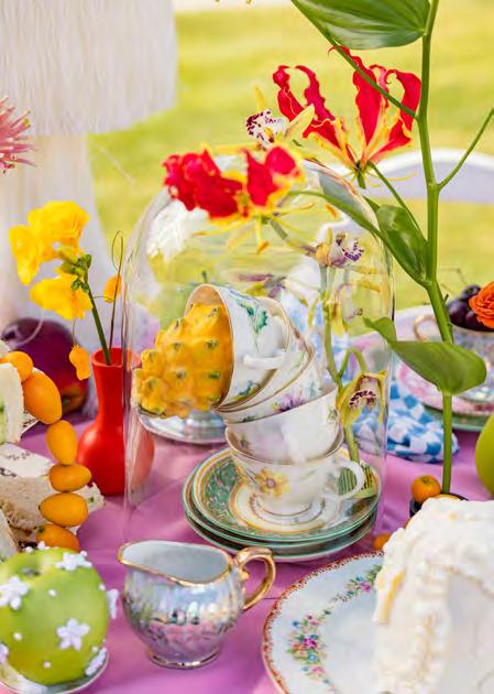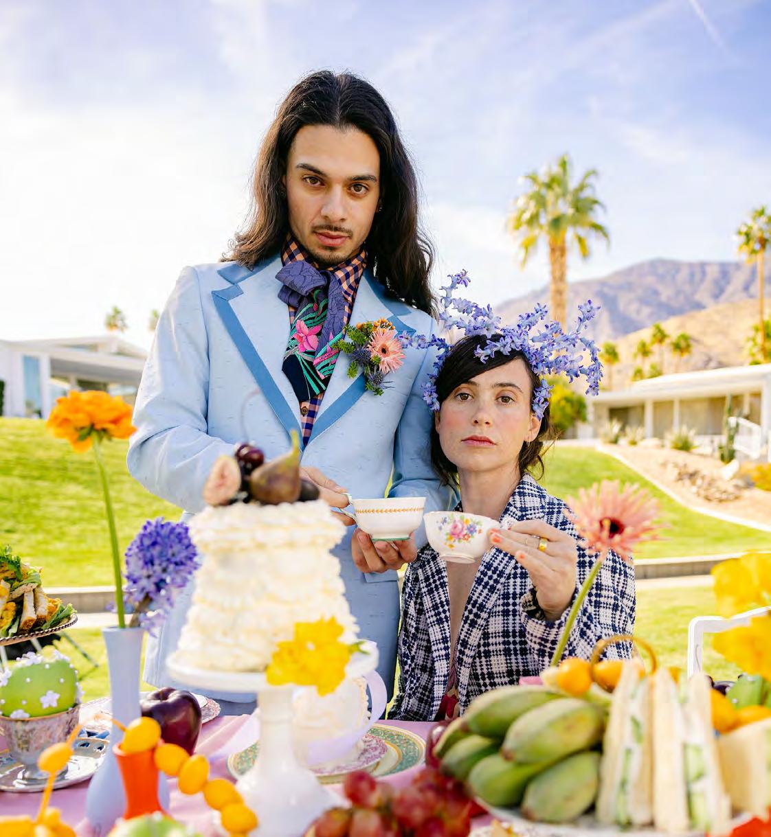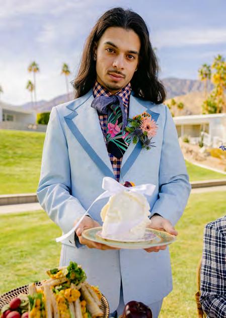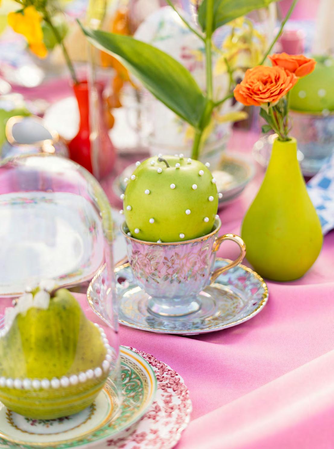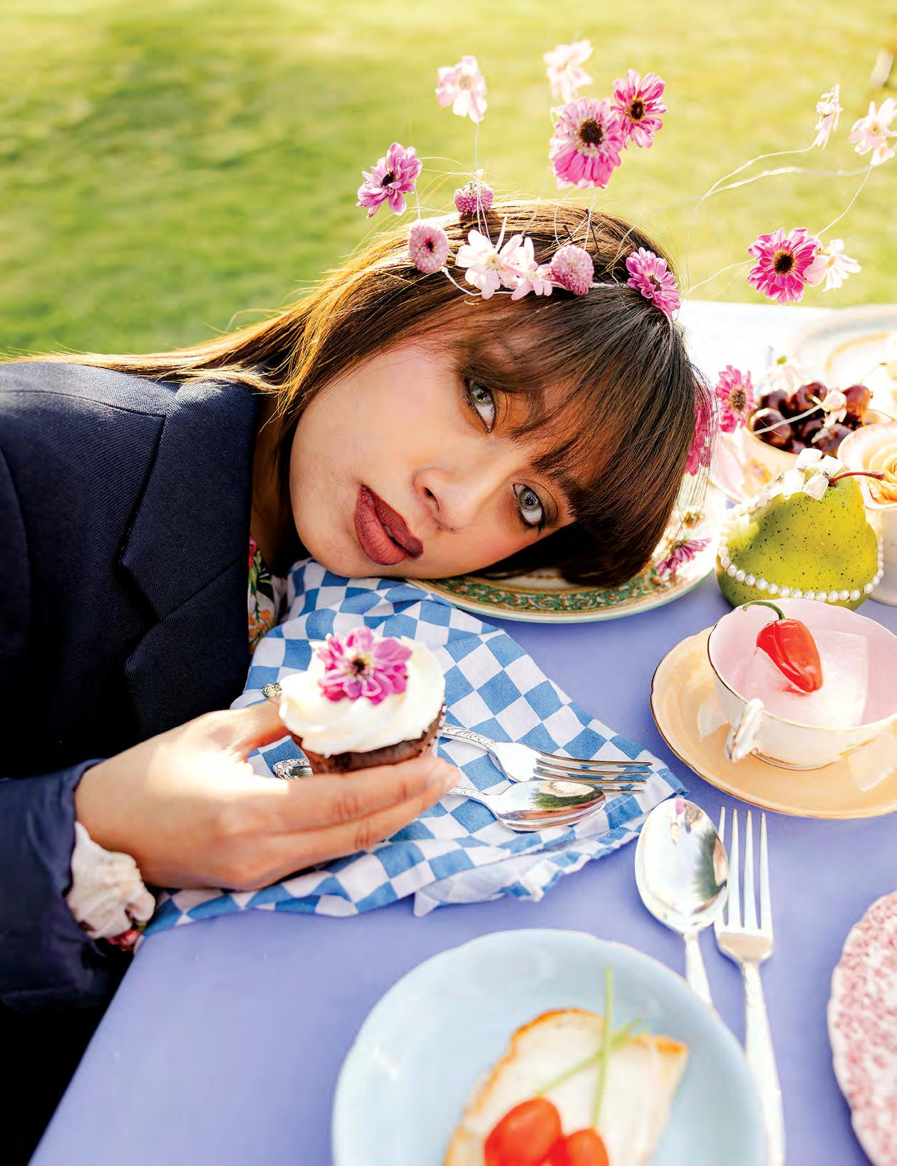 Doughty, who served as creative director for the project, incorporated her unique floral designs and other imaginative touches into the photos. In one, a model wears a delicate flower crown. In another, a closer look at a frosted, cactus-shaped cake reveals it’s decorated with vintage brooches found at the store.