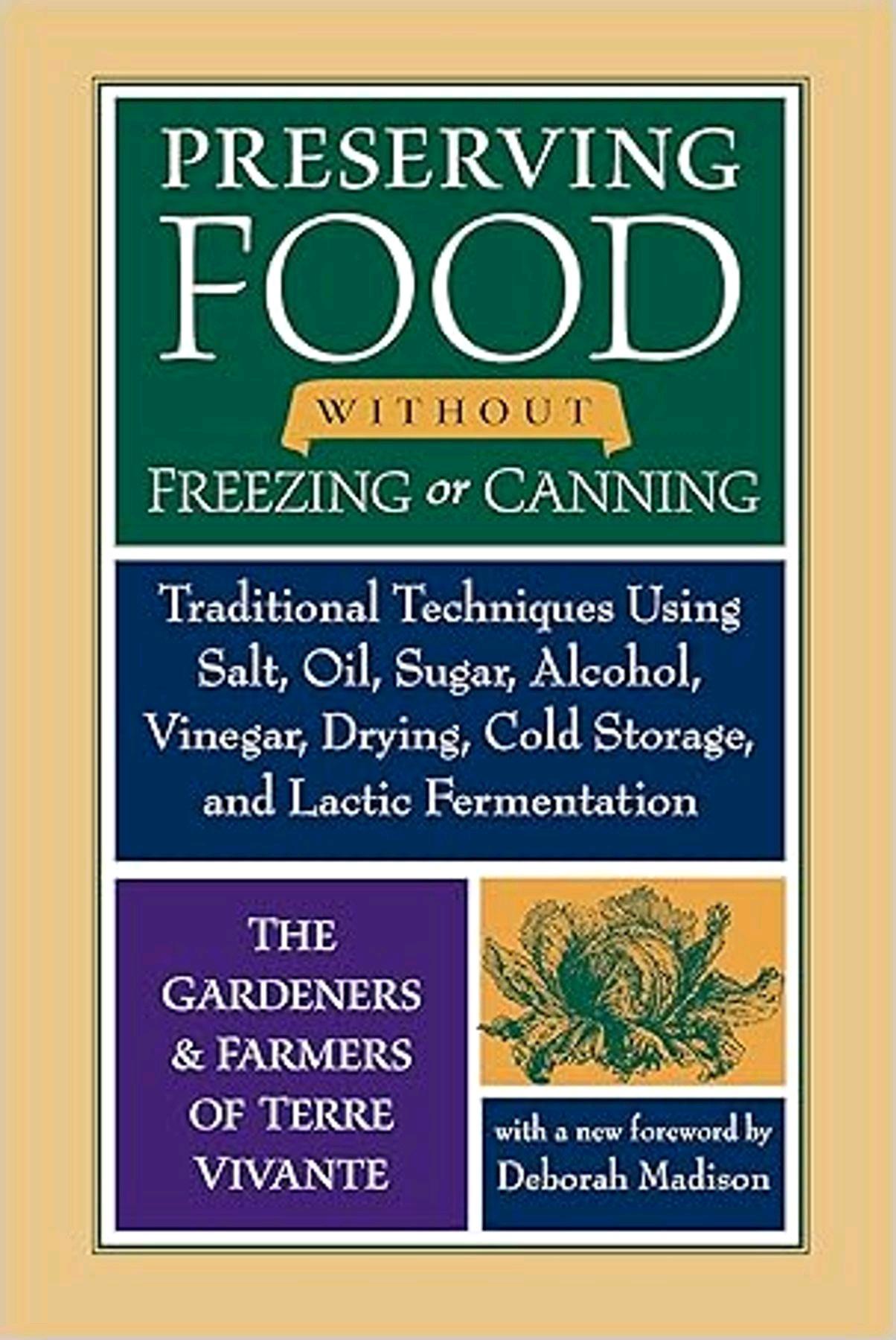 Ebook available: 'Preserving Food without Freezing or Canning: Traditional Techniques Using Salt, Oil, Sugar, Alcohol, Vinegar, Drying, Cold Storage, and Lactic Fermentation' by Centre Terre Vivante.