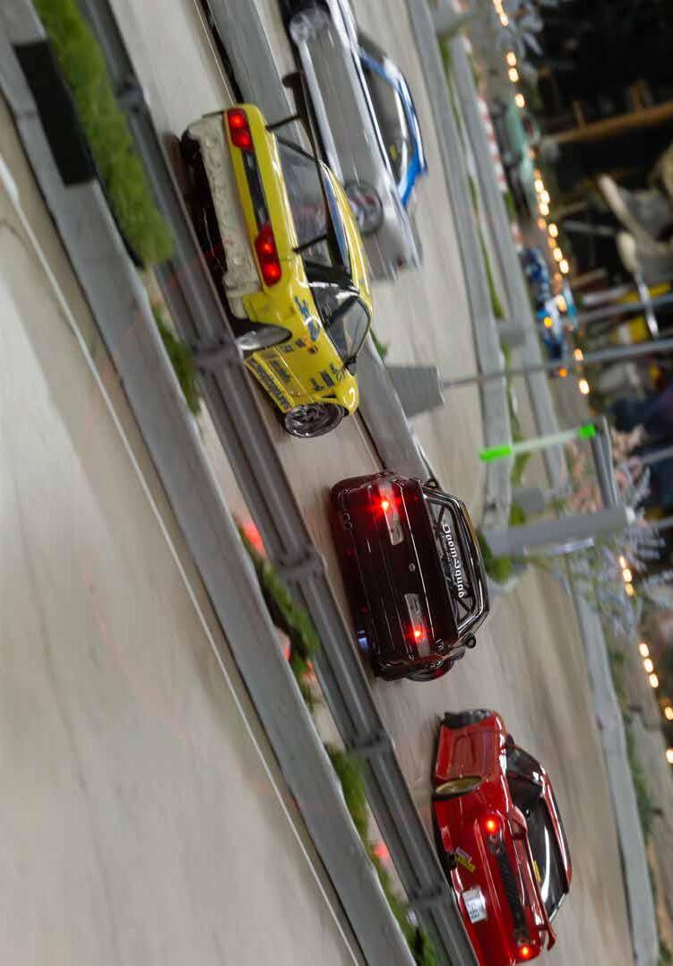 To make it happen, DARC Circuit brings a dedicated 25-person setup crew, including drivers. They arrive early and build a full track in two to three hours, complete with parking spaces, hatching, and scale scenery. Last year, Kyosho provided sponsored Fazer D2s for rentals, run on a smaller, newbie-friendly ‘lima bean’ shaped layout. If drivers can lap the small track in a rental RC without hitting anything, they earn a run on the big track, but rarely do. That’s what makes the moment work - people leave with real respect for the skill it takes.