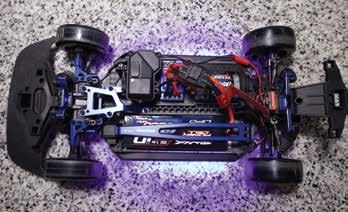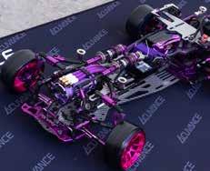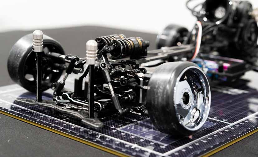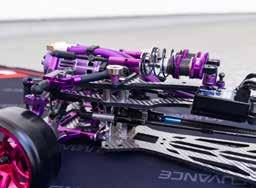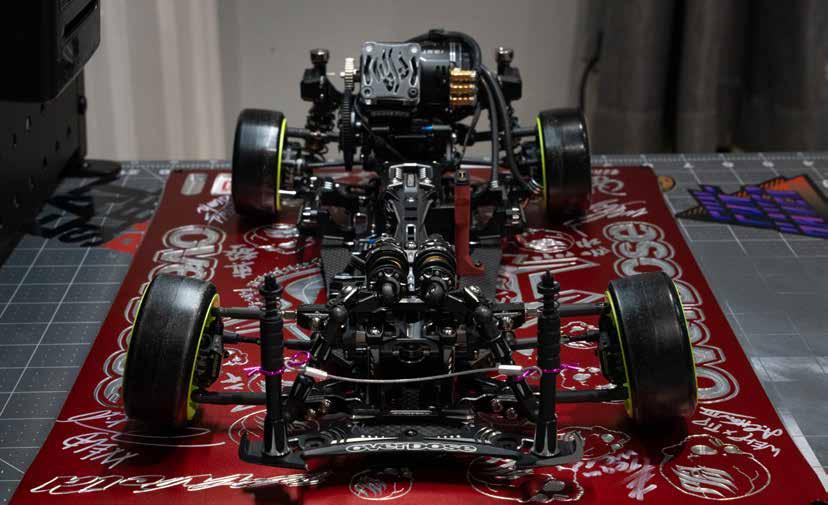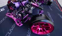 for performance and simplicity. The ESC is an Acuvance XarvisXX and Agile motor combo in all 3 turns, 10.5, 11.5, and 13.5, to change depending on the track. Support comes from Acuvance Blaze and Acutron capacitors, with a Futaba 10PX radio, all tuned with Acuvance Tao II and SBUS tools. Steering and stability are handled by Reve D’s RS-ST PRO servo and Revox gyro. My choices here are personal, as I’ve been part of the Acuvance team for quite some time and believe in the product and user interface at a high level. I stick with Reve D because the simplicity and quality of the servo and gyro are truly unmatched.