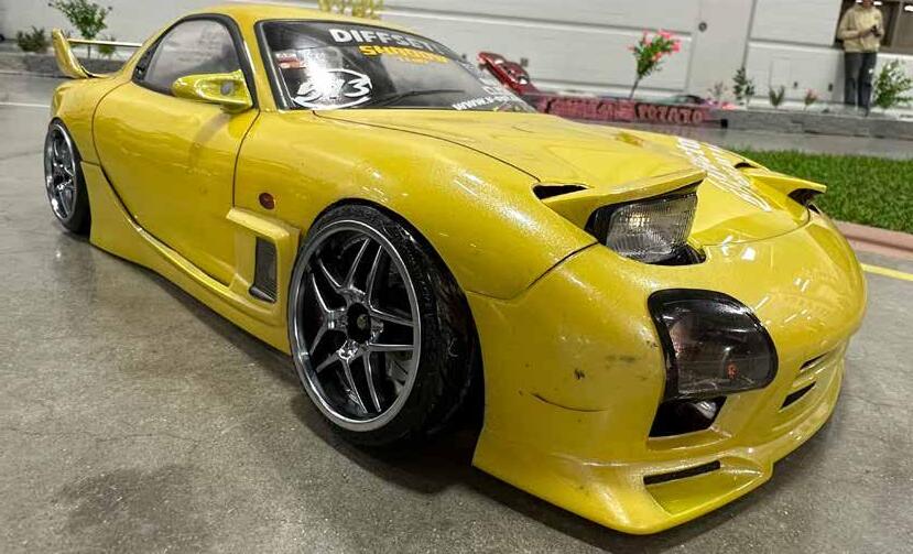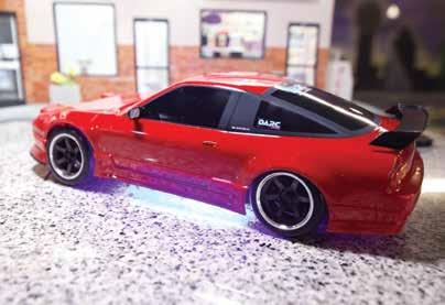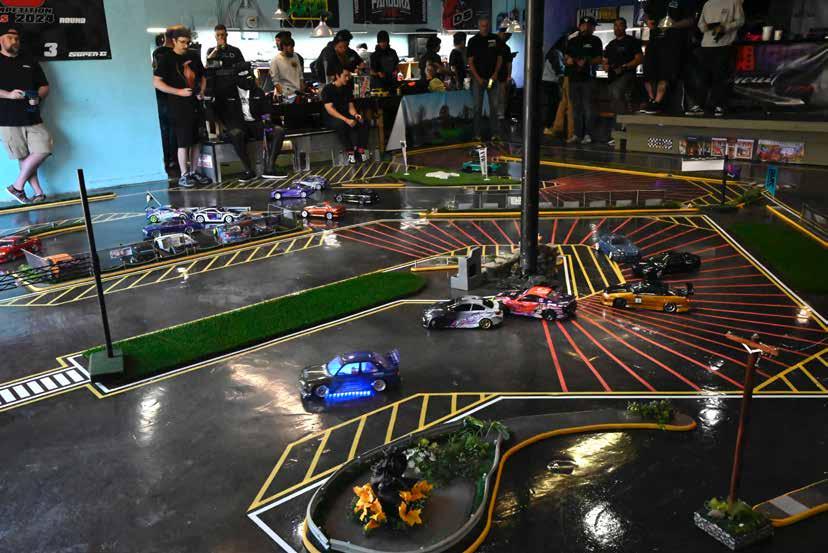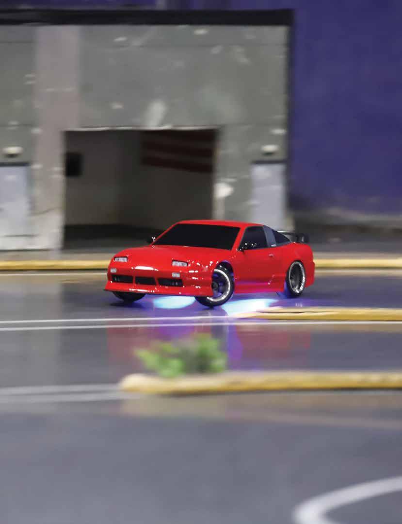 The Track - RC Car World mainly deals with on and off-road RC. The old location had two off-road courses and one drift track. RC drifters were there seven days a week, so the new location included a super unique 1800 square ft P-tile layout. Alex explains, “Our track layout is an original design, rectangular but wide. It’s P-tile done the right way. I design our track in a unique way, using drive lines which can be run in multiple paths without having to redo the track. The lines always flow without creating ‘choke points’, catering to fast or slow drivers. We’ve done roughly eight different layouts this way and there is never an issue for large trains.” Alex describes the scale presence at RCCW, “We do have some scale scenery, my favorite is the scale crowd, but currently it’s off due to a refresh coming up. In competitions, I award the highest placed driver using roll cages, lights, and liveries a $100 prize to encourage more realistic drift cars.” Aside from the trackspec tire, the Reve D AS-01, the tuning at RCCW is open because of the size, layout, and line changes, so drivers can’t just cater to speed. In Alex’s words, “For a very long time we forced everyone to run 33/67 weight bias, but everyone has learned not to use weight as a crutch to gain speed and grip, so now it’s open.”