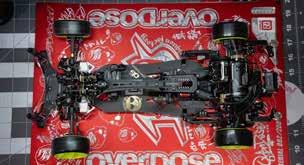 Suspension is built around proven parts: HG4 dampers with Overdose helper springs (front 1.2 2045, rear 1.2 2050). Fluids are tuned for response and stability, running 15wt Moty x OD oil up front and 25wt in the rear. Drivetrain uses an Overdose ball diff, giving a smooth, tunable feel that matches the chassis’ high-end character.