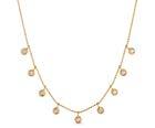 This 18-inch necklace is crafted in 14k yellow gold with nine dangling diamond stations. Each round diamond is bezel set with a total carat weight of natural and responsibly sourced diamonds, which are rated as faint in color and included.