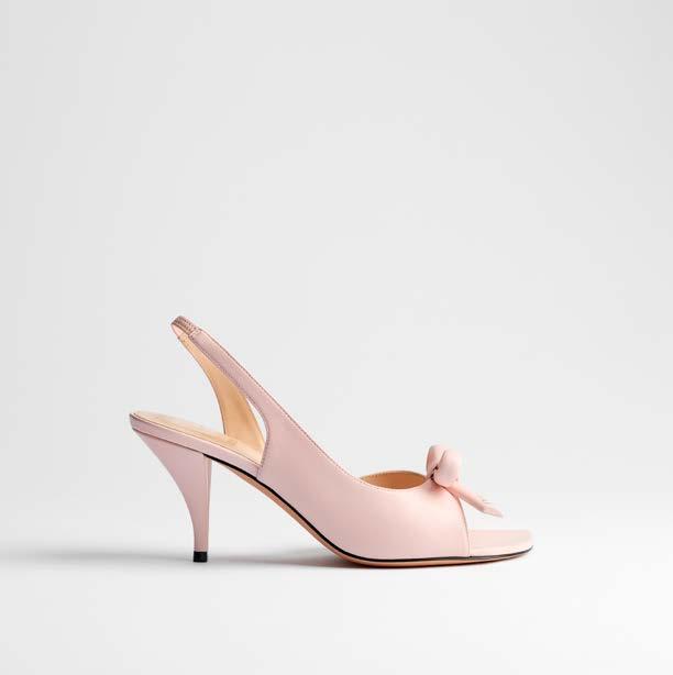 Bow heeled slingback sandal celebrates elegance through one of the House’s eternal symbols: the bow. Elevated by a sole in the shape of a D for Dior, the lambskin shoe, defined by its streamlined silhouette, embodies a sublime expression of refinement.
