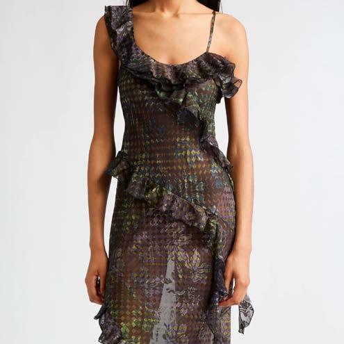 Each season, the Turkish brand whisks us away to Siedrés—an imaginary Mediterranean town you might breeze through in this sheer chiffon maxi dress with tiered ruffles that cascade across your shape to romantic effect.