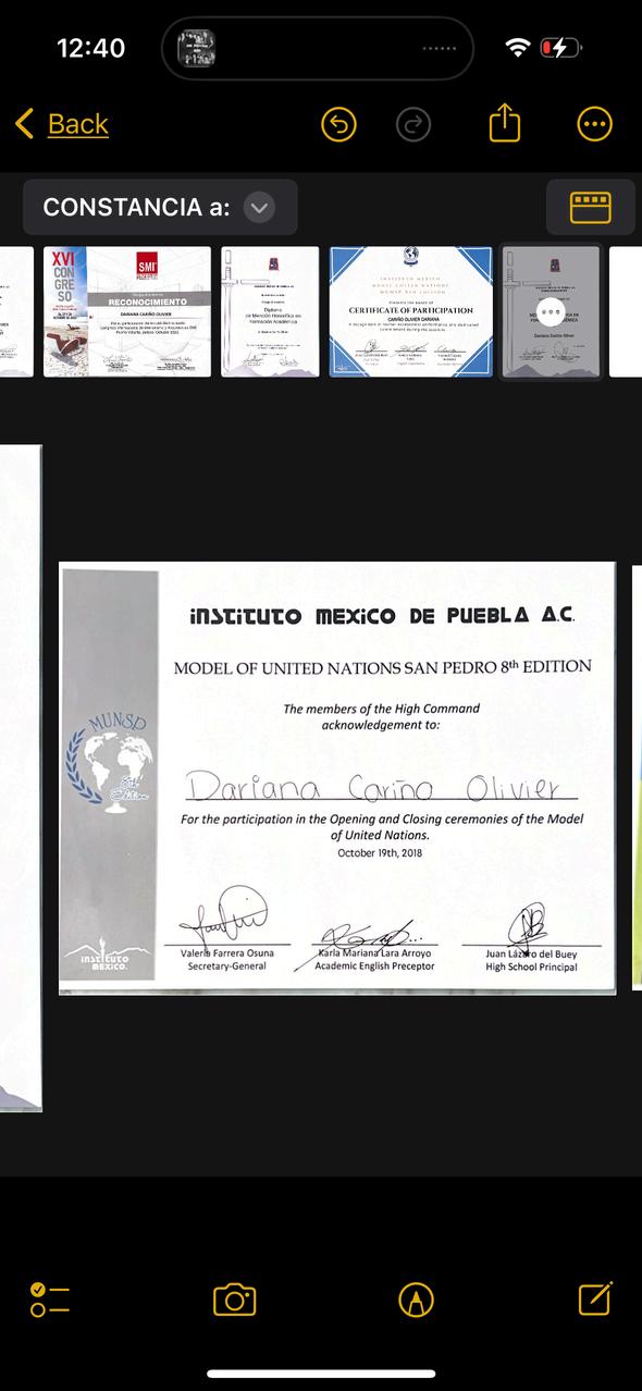 - Diploma of Excelence in High School - Instituto México de Puebla campus San Pedro (2018-2021).