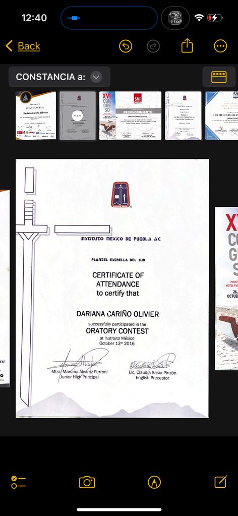 - Diploma of Excelence in High School - Instituto México de Puebla campus San Pedro (2018-2021).