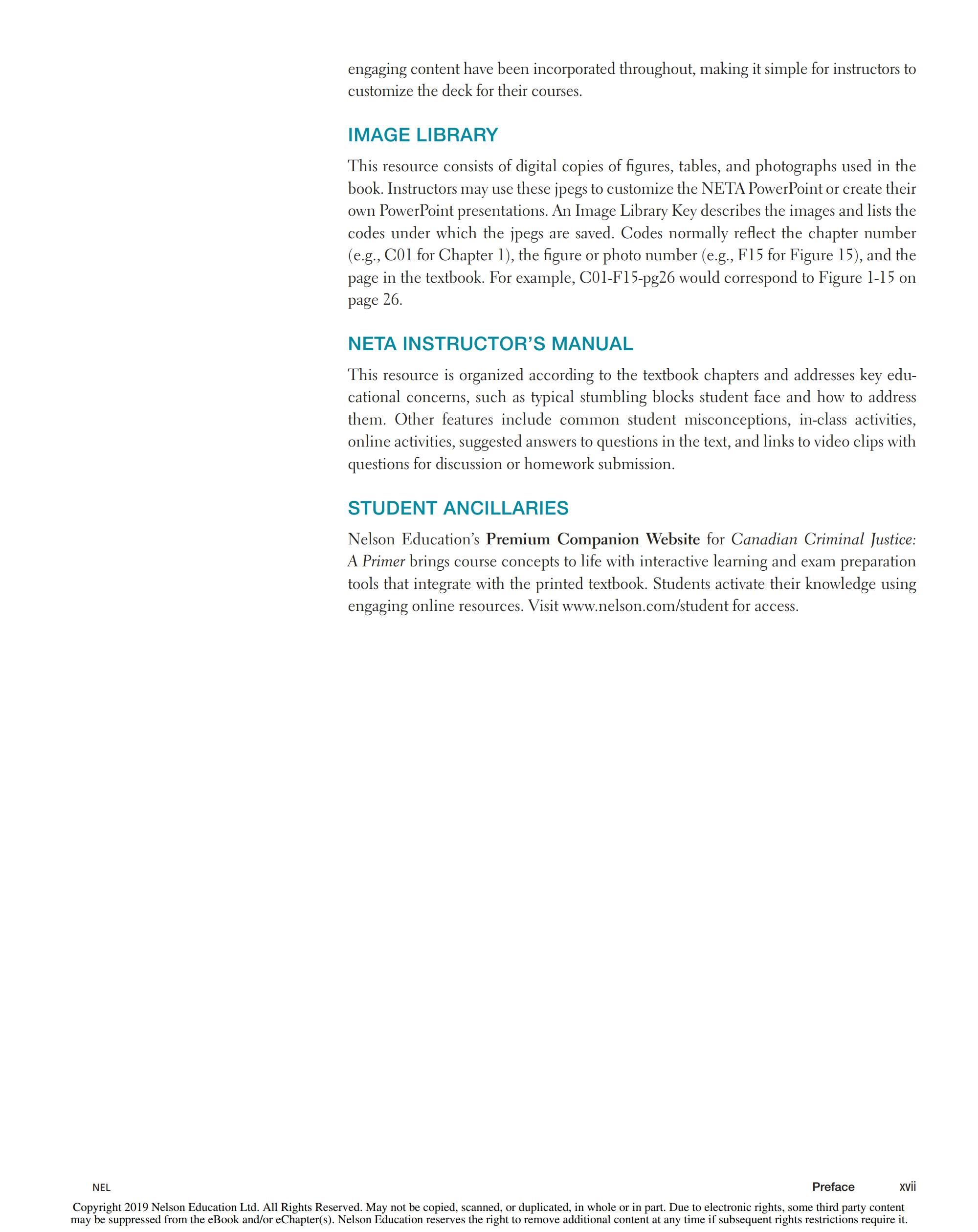 T l1 e N e lson Educa t io n Teac hi ng Advantage (NETA) pr og ra1n de li ve rs resea rc l1-b ase d i11s tru c t o r res our ces th at prom ot e stud e11t e11ga ge n1 e nt a nd hi gl1 e r- ord e r thinkin g to e 11abl e tl1 e su ccess of Ca nadian stud e nts and e du ca tors Vi sit N e lso11 E du ca ti on 's Inspir e d I nstructio n we b sit e at www. n e lso n .co m / in spir ed t o fi11d o t1t m ore about NETA. T l1 e foll ow in g i11s tru c t or res our ces l1 ave b ee n c r eat e d fo r C anadi an C rim in al Ju stice: