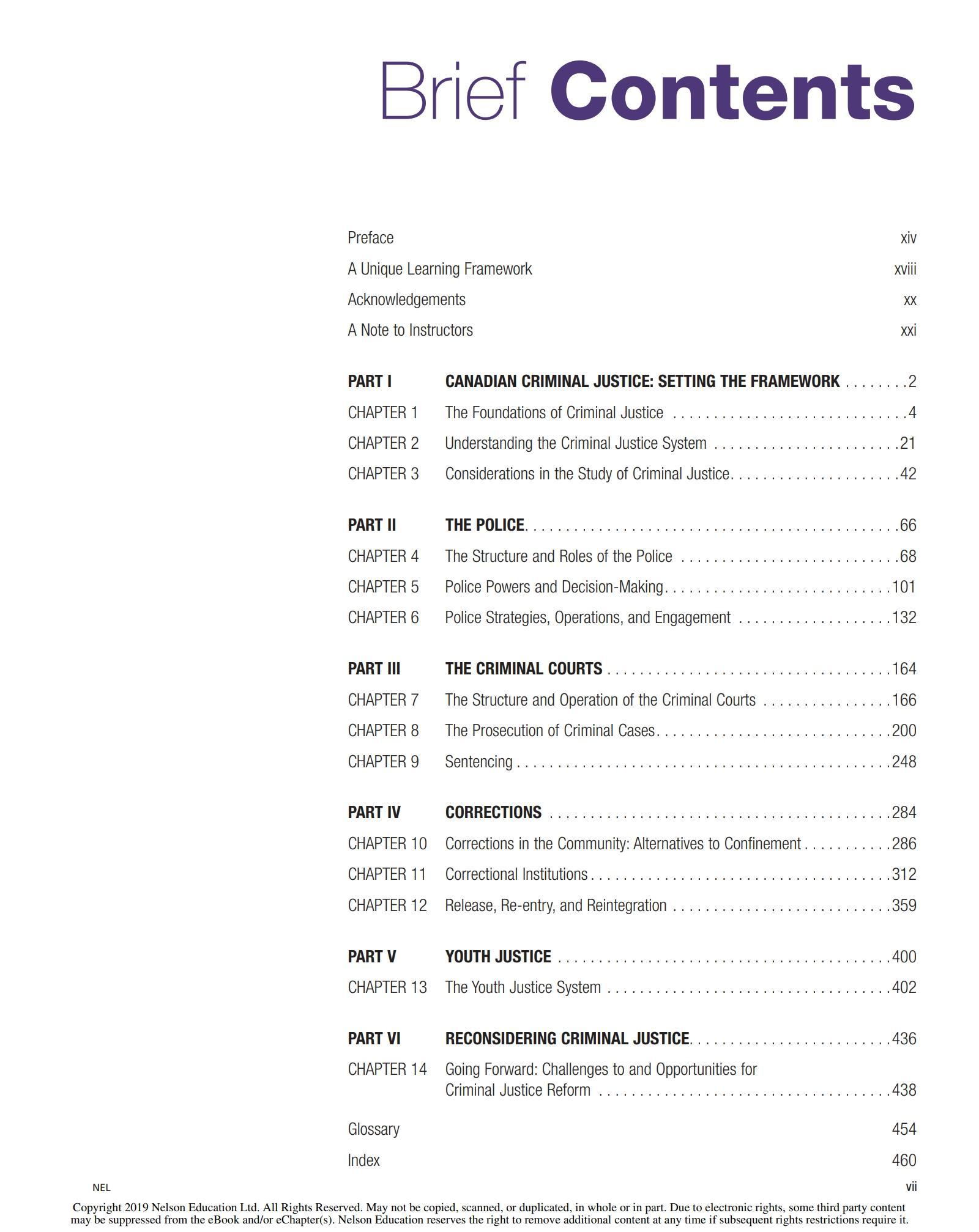 T h e d y11a1ni c n a tu re of th e Ca n a di a n c rimi11 a l ju sti ce sys t em pr ese nt s c h all e 11ges in e n surin g th at tl1e n1at e ri a ls in th e t ex t are acc ur at e a nd up-to-d a t e T h ro u gl1 o ut th e sys t e m , tl1 e re a re l1i gl1-p ro fil e iss u es b e i11 g d eba t e d , co urt d ec isio n s th a t a re imp ac t i n g eve ry face t of th e sys t e m , and a ve rit abl e expl os io n of c rin1in a l justi ce r esea rc h. W itl1 e diti o n s of th e t ex t o n a fo u r-ye a r pu b li ca ti o n cyc l e, th e 111a t e ri a ls ca 11 bec om e d a t e d , oft e 11 by th e tim e tl1 e print dri es o n a new e diti o n.