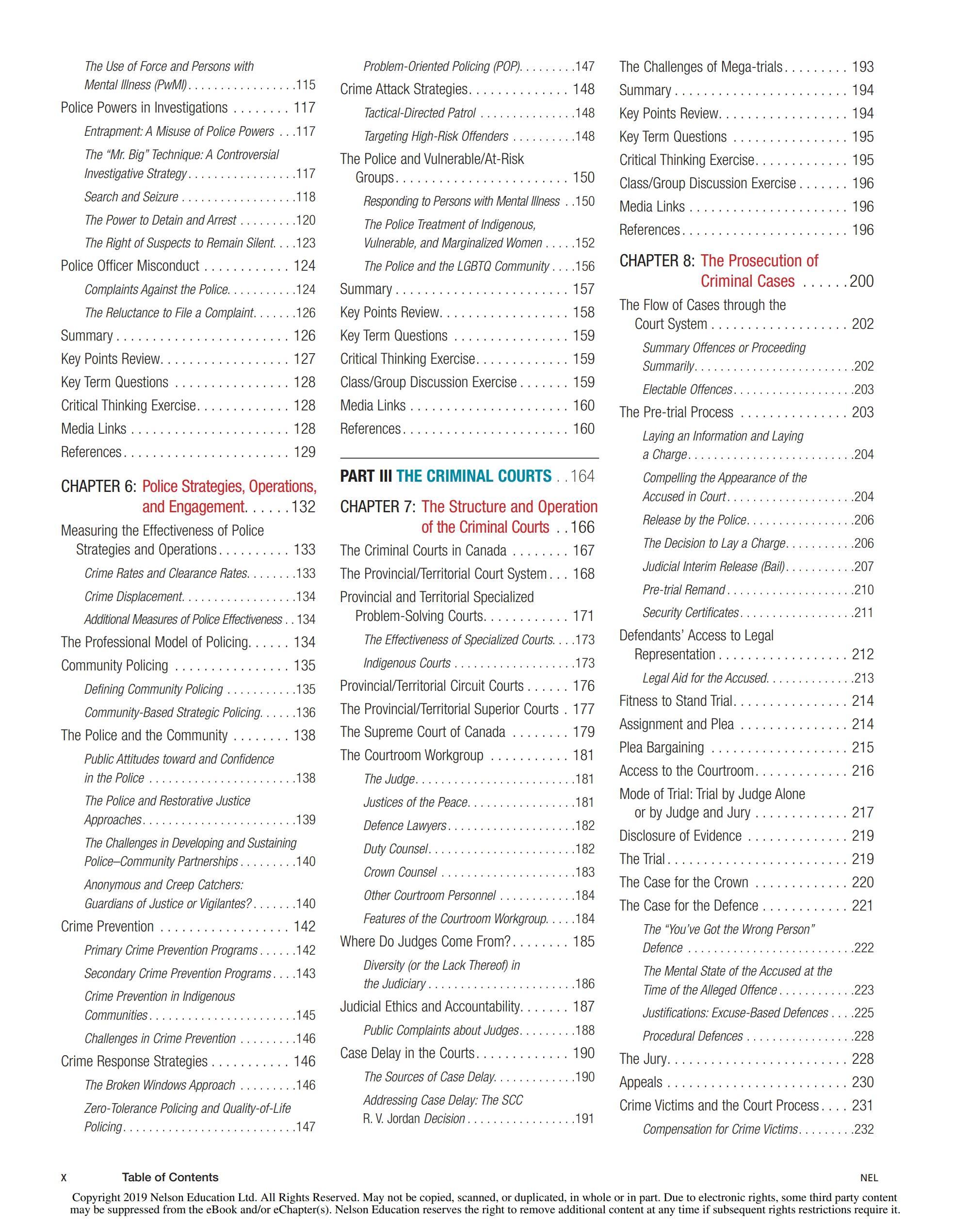 File boxes highlight important events, research studies, and cases. Police File boxes appear in Part II; Court File boxes are included in Part Ill; Legal File boxes are included in Parts II and Ill; Criminal Justice Files appear in Part I; Corrections Files in Part IV; and Youth Justice Files in Part IV.
