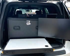 A self-contained plug-and-play enclosure that transforms existing SUVs or pickups into field ready command mobile command stations.