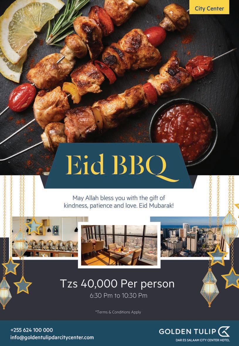 ar Es alaam erena otel frican ight, every last riday of the month at erengeti ibo Terrace estaurants utdoor arbeque ight with ive band entertainment from 5 and from :30 10:30pm, for only T 5,000. all 0 1 500.