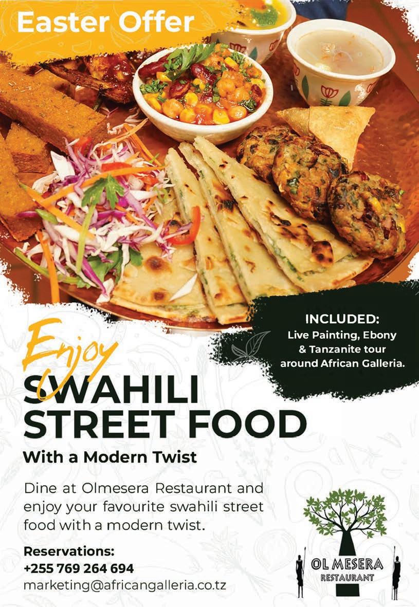 Tanzania is a diverse country with strong Arabic, Indian, English and traditional African and wahili in uences. This rich diversit is re ected in the countr ’s culinar scene, as visitors and locals can enjoy a wide range of delicacies originating in di erent regions of the world. ar ife presents a selection of restaurants, cafes, and bars that are guaranteed to satisf even the wildest food or drink cravings.