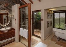 area. ll rooms are tastefully decorated with all the amenities one would e pect in a 5 star lu ury lodge. ll the rooms are tastefully decorated and feature modern guest facilities and amenities, including indoor and outdoor shower, slipper bath, air conditioning, fi replaces, Wi i, mini bar, in room safe and a private verandah.