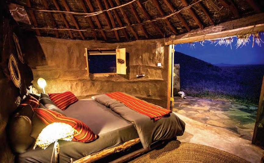 16 earthen houses built in traditional style replicate a Maasai village. Each is powered by solar energy and