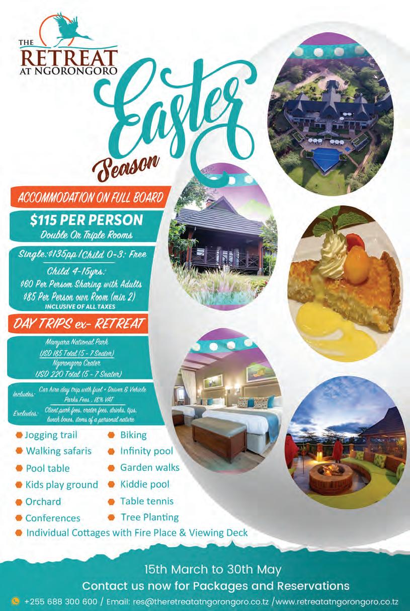 • Coral Ridge Spur: ‘Kids Eat Free’ - 1 Free Kids’ Meal per dining adult ordering a Main Meal and Lunch promo (11am-4pm) for Tsh 20,000 PP. Call +255 764 700 657.