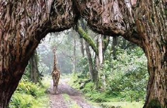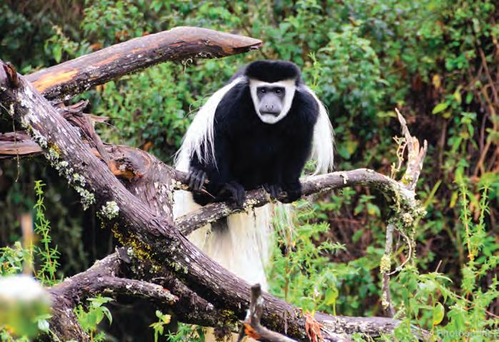 forest inhabited by inquisitive blue monkeys and colourful turacos and trogons – the only place on the northern safari circuit where the acrobatic black-and-white colobus monkey is easily seen. In the middle of the forest stands the spectacular Ngurdoto Crater, whose steep, rocky cliffs dotted with herds of buffalo and warthog.