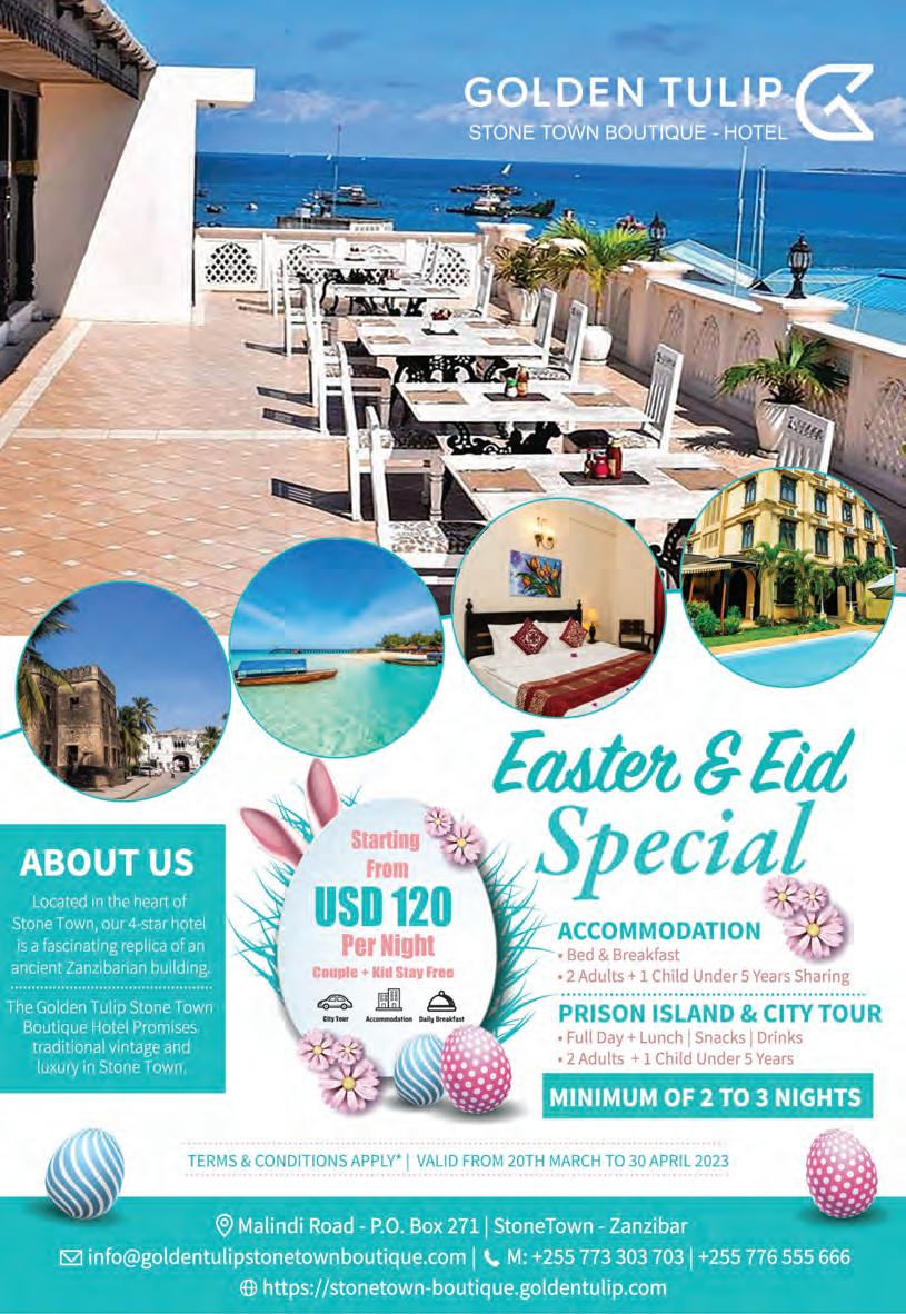 • Hamilton’s Gastropub: offers British & American classics, unique dishes like the Chilli Black Burger, expertly made cocktails & a lively atmosphere (4pm12am). Call +255 659 070 899.