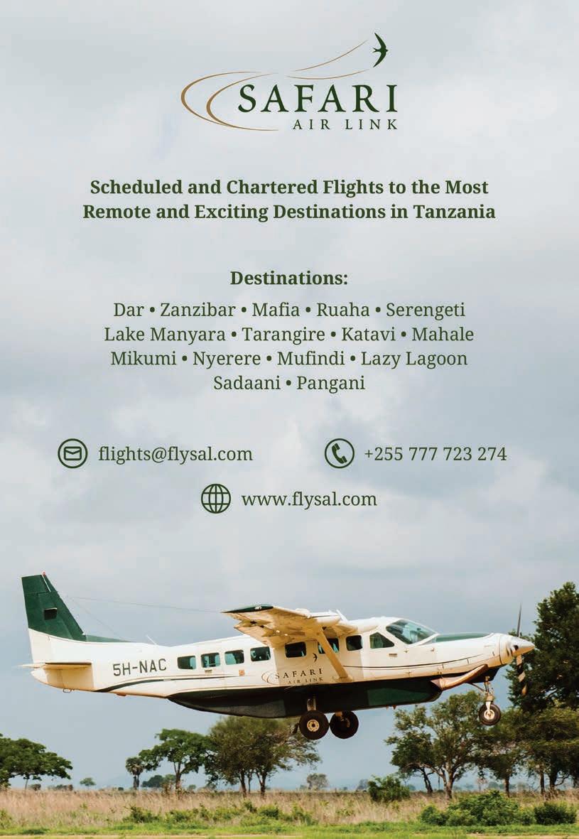 At Kearsleys, we believe that every journey should be as unique as the traveller embarking on it. Our passion for Tanzania’s natural beauty drives us to offer experiences that go beyond the ordinary, creating trips that are rich in culture, wildlife, and personalized luxury. We pride ourselves on offering more than just a safari; we craft unforgettable memories that our clients cherish for a lifetime. Through our commitment to excellence, we strive to ensure that every detail of the trip is perfectly tailored to meet our clients’ preferences. From the aweinspiring landscapes of the Serengeti to the cultural richness of Zanzibar, we ensure each journey reflects the true essence of Tanzania. Our vision is to continue being a trusted partner in luxury travel, delivering unparalleled service and extraordinary experiences, all while maintaining our deep commitment to sustainability and responsible tourism.
