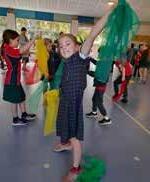 Suitcase Circus is always popular with students as Joe provides a showcase of circus skills to all students, and then each class has a workshop to try lots of the skills for themselves.