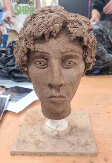 In Class 9, students have been deeply engaged in sculpting clay heads, a challenging project that they are close to completing