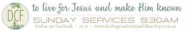 Email: contactus@darlingtonchristianfellowship.com.au Find us on Facebook at Darlington Christian Fellowship Website: https://www.darlingtonchristianfellowship.com.au