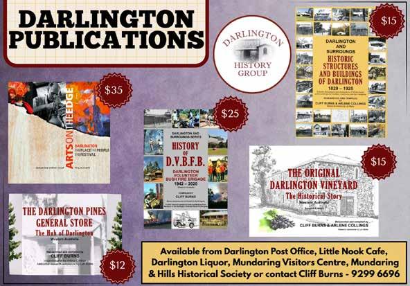 ANNUAL SUBSCRIPTION: You can get a copy of the Review mailed to you if you leave Darlington but want to stay in touch: annual subscription $77 includes mailing within WA. Email: business@darlingtonreview.com.au or phone Betty Pitcher on 0408 912 101 (Publication is printed on PEFC certified 30% recycled paper and uses vegetable inks).