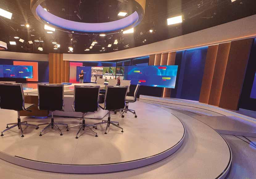 pantallas del plató se orquesta mediante Viz Multiplay, garantizando la sincronización perfecta de contenidos en el videowall curvo y los tótems verticales.