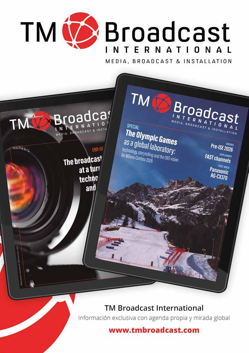 TM Broadcast no se hace responsable de las opiniones vertidas en los reportajes e informaciones firmadas. Todos los derechos reservados. Esta publicación no puede ser reproducida ni en todo ni en parte en ningún medio impreso ni electrónico, ni registrada en, ni transmitida por cualquier sistema sin permiso previo por escrito de la editorial.