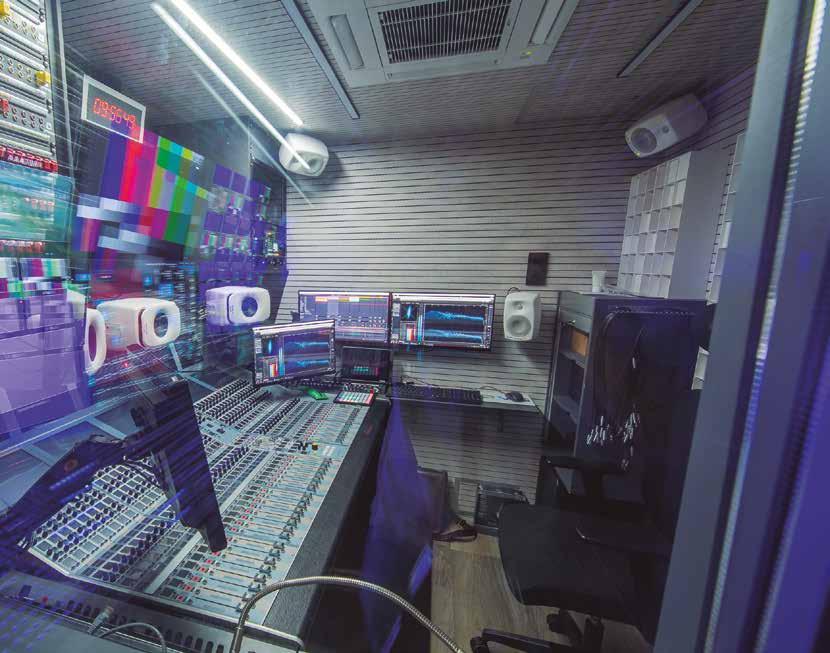 › Equipamiento de audio: mesa de audio, microfonía (de mano, inalámbricos, diademas, de corbata) monitores, retornos, codificadores-decodificadores, reproductores varios, híbrido telefónico, sistema de comunicaciones 4H link 6 líneas, códec RDSI…