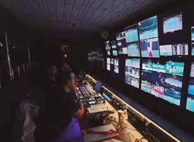 diferenciadores respecto a cualquier solución que se estime para realizar multicámara en exteriores. Desde el punto de vista de la producción, una unidad móvil alcanza su categoría de broadcast al cumplir las normativas del sector profesional del audiovisual (SMTPE 292M y 259M) y cumple perfectamente la prevención en riesgos laborales que puedan surgir en este entorno laboral (accesos, aislamiento térmico y acústico, protección eléctrica, carga y sobrepeso, conducción…).