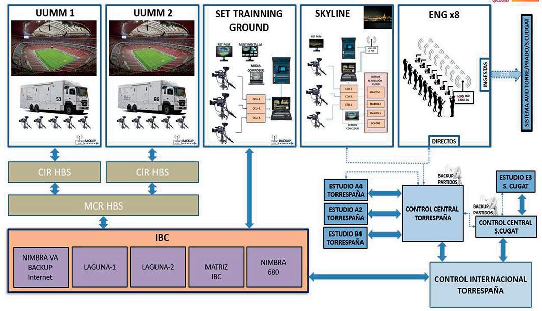 WAN networks between our Skyline in Doha and a technical control room set up at Torrespaña’s headquarters in Madrid. On Amazon servers, the Grass Valley AMPP platform has been implemented with all the necessary services for production. The Doha Skyline has been the remote set for this cloud production.