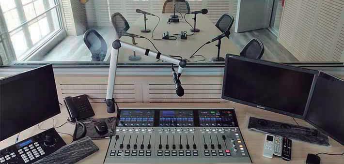 The main studio, dedicated to Radio Nacional de Colombia, is equipped with an SX2 mixer featuring 16 motorized