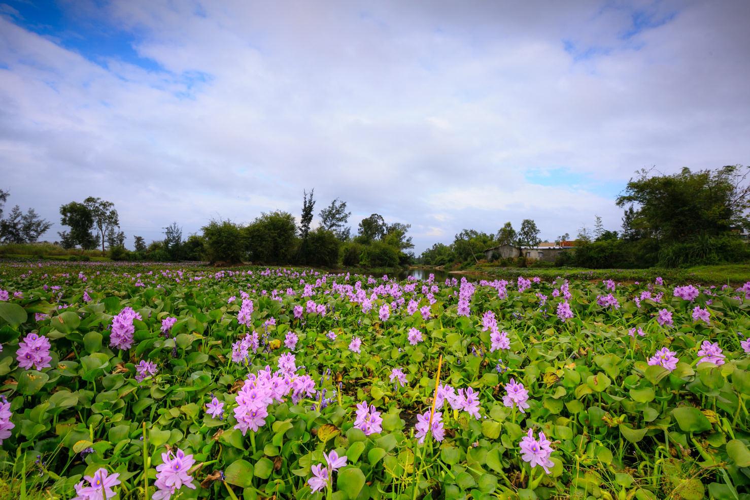 Descripción: Originaria de América del sur cuya peculiar forma la ha hecho muy popular en los estanques. Aunque actualmente está considerada una de las cien plantas más invasoras. El jacinto de agua es una planta provista de cámaras de aire que le permiten flotar en el agua. Es la única de su género que se mantiene todo el tiempo en el agua. Sus flores moradas la hacen muy atractiva visualmente.