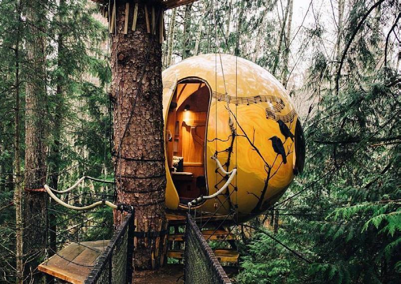 Tucked away in the heart of the coastal rainforest of Vancouver Island, the Free Spirit Spheres, with its unique suspended spherical treehouses, offer an interesting stay option amid nature. Raised above the ground, but not too high either, these orbs are works of art, gently swaying to the rhythm of nature. Built by Tom Chudleigh, these spherical treehouses are inspired by biomimicry, which learns from and mimics the strategies found in nature. Each sphere is held in the air using a series of suspension ropes and gives guests a serene sense of floating mid-air. Peace and relaxation in these tastefully designed, simple, and elegant spheres is guaranteed.