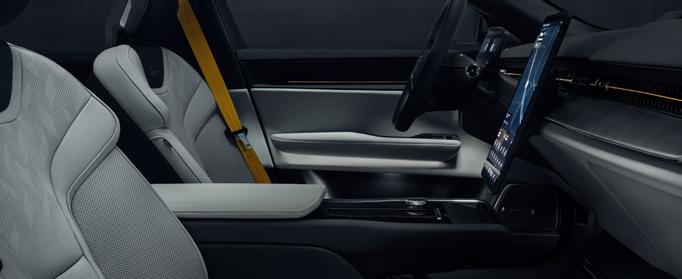 One of the most striking details of the P3 is the design of the headlamp, where the housing itself is shaped like the signature Thor’s hammer LED daytime running light motif. Compared to the P2, the vehicle is also larger overall with a traditional crossoverlike silhouette and athletic-looking body panels, a cool tailgate spoiler, and polished 22-inch split-four-spoke forged