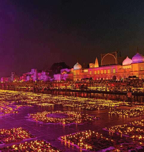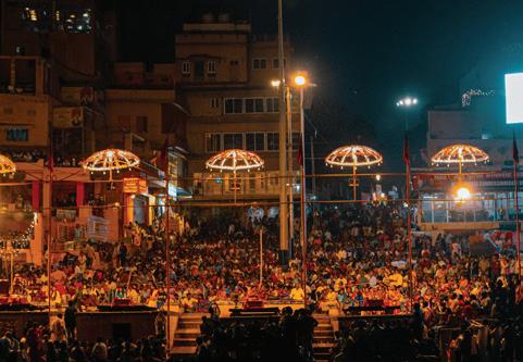 to behold, during Diwali it becomes even more fascinating. However, the real festive fervor unfolds during Dev Deepawali, which is celebrated on Kartik Poornima. The city sparkles with light, and the air is abuzz with devotional energy. The streets are alive with colorful rangolis, the aroma of mouthwatering delicacies, and an unmatched festive cheer. The best way to experience all the grandeur of the illuminated ghats is to take a boat ride on the Ganges—a memory sure to stay forever.