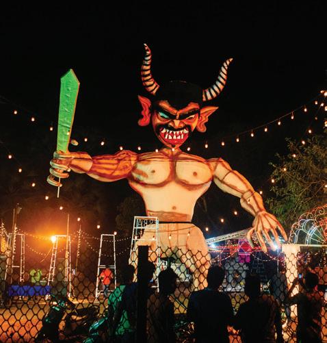 unlike others, the bongs of West Bengal celebrate the fearless Goddess Kali and her triumph over the demon Raktabija. The streets are illuminated with extravagant light displays, and the hypnotic beats of the dhak (traditional drum) can be heard in every corner. One of the best ways to experience Kali Puja in Kolkata is to visit various pandals showcasing Kolkata’s artistic brilliance. Artisans work all year round to create an immersive experience at pandals dedicated to Maa Kali. Some of the most awe-inspiring decorations can be witnessed at Kalighat Kali Temple, Chetla Agrani Club, and Dakshineswar Kali Temple. Celebrations in Kolkata are incomplete