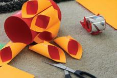 STEP 5: Stick the strips to the cylinder by applying glue to the top edge. To give the lantern a more finished look, stick a colourful or sequin strip on the top and bottom edge of the cylinder.